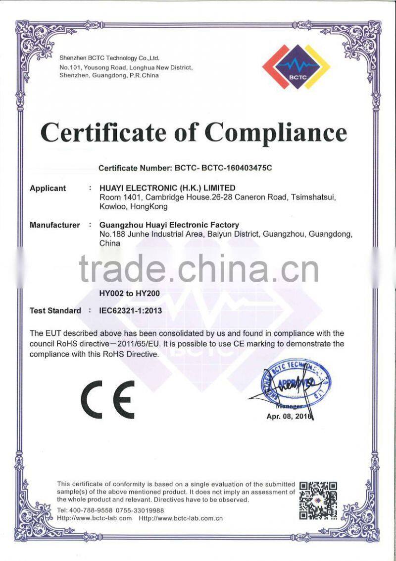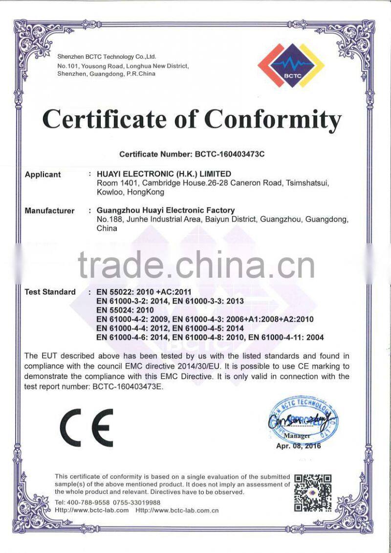 Huayi Electronic Factory (Huayi) is located in Guangzhou City, China. We are a comprehensive company engaged in R&D, Manufacturing and Marketing. In many years of pioneering work, Huayi has been reforming and developing constantly, but still sees honesty as the root to success and quality as the lifeblood of a company.
